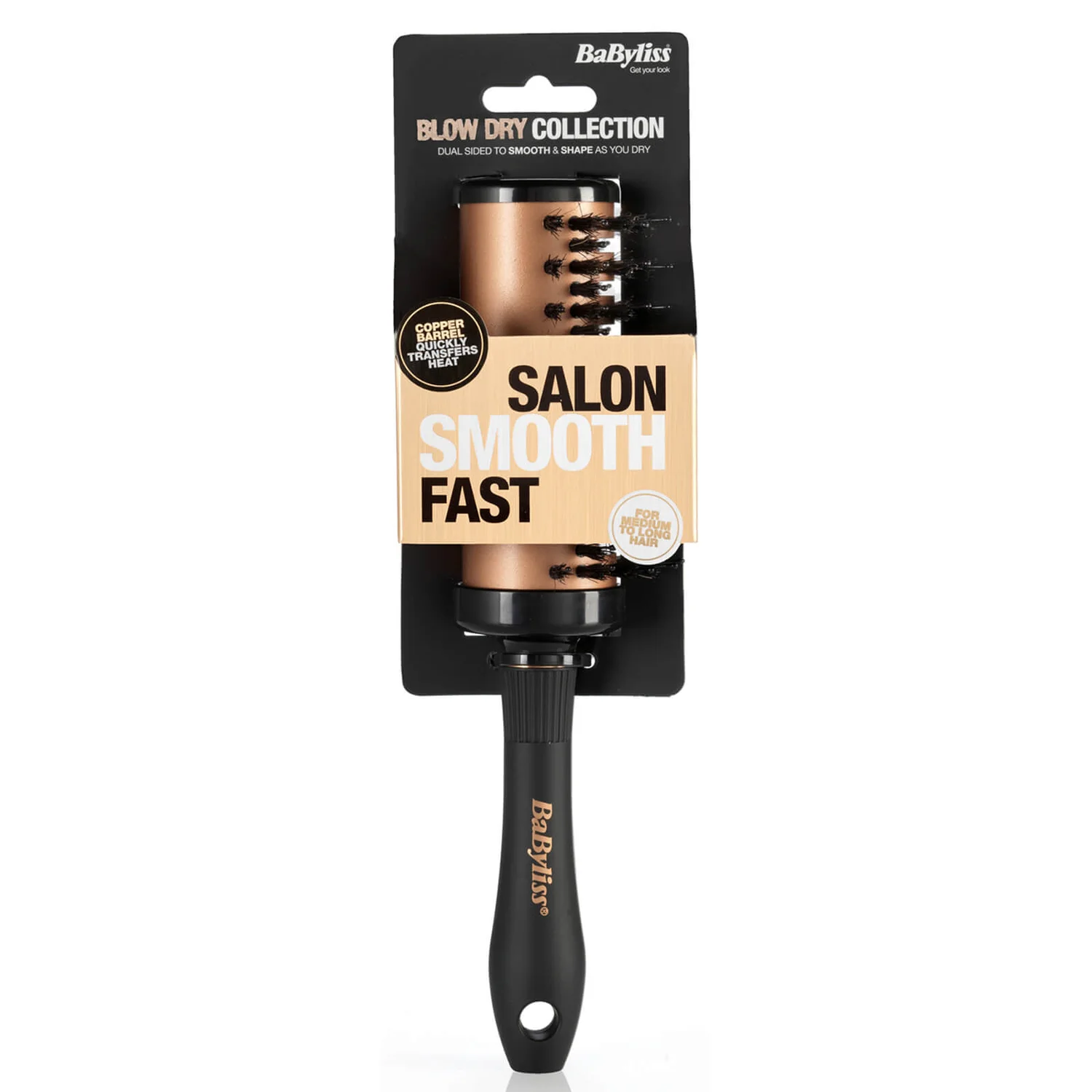 Achieve a salon-worthy blow-dry with the BaByliss Copper Half Barrel Brush. This beauty tool showcases a unique and innovative design, complete with a 48mm dual sided barrel to help you create bouncy, silky-smooth styles every time.