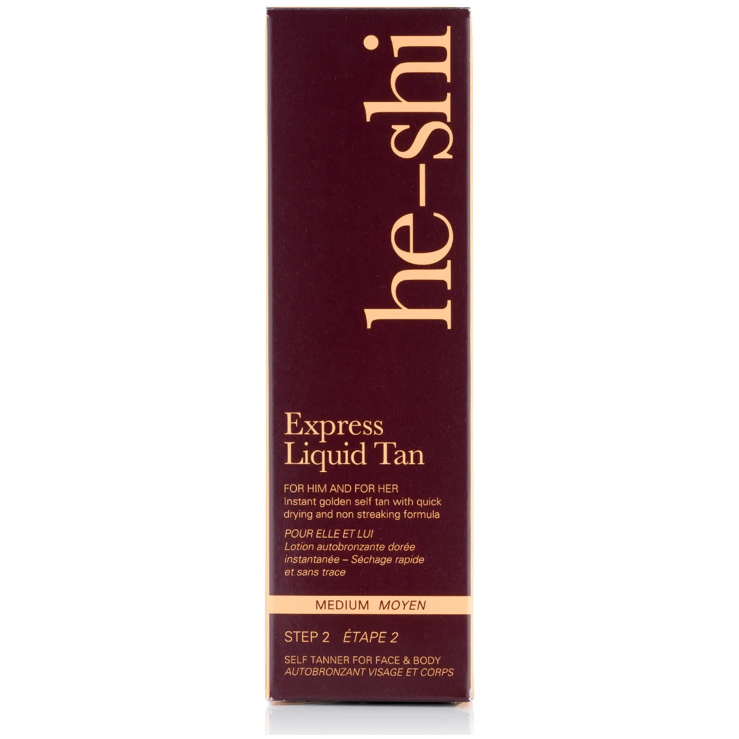 Achieve an instant, golden tan with the He-Shi Express Liquid Tan, an effective formula that works to provide streak-free colour for up to 10 days. Suitable for both the body and face, the self-tan offers an enviable glow from head to toe.