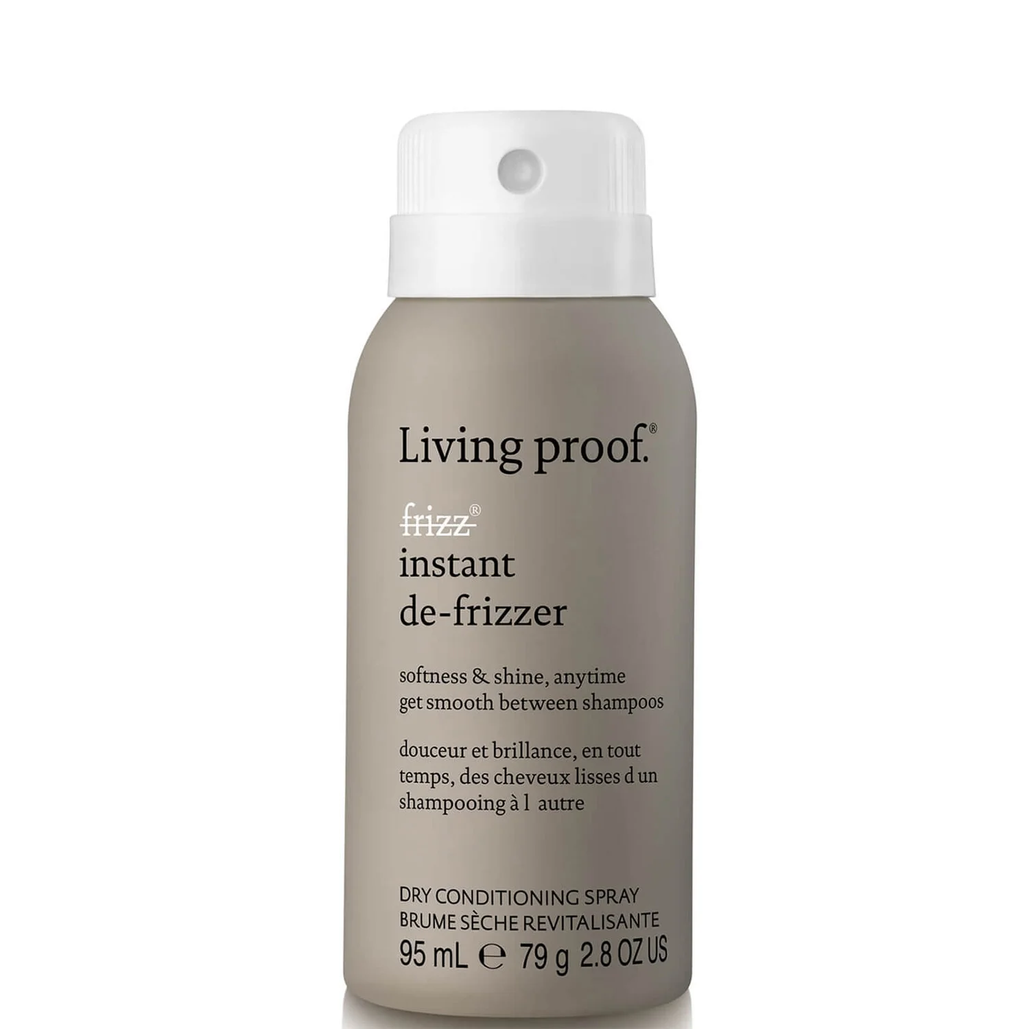 Take control of unruly locks with Living Proof No Frizz Instant De-Frizzer; a dry conditioning spray that restores smooth, sleek strands from root to tip.