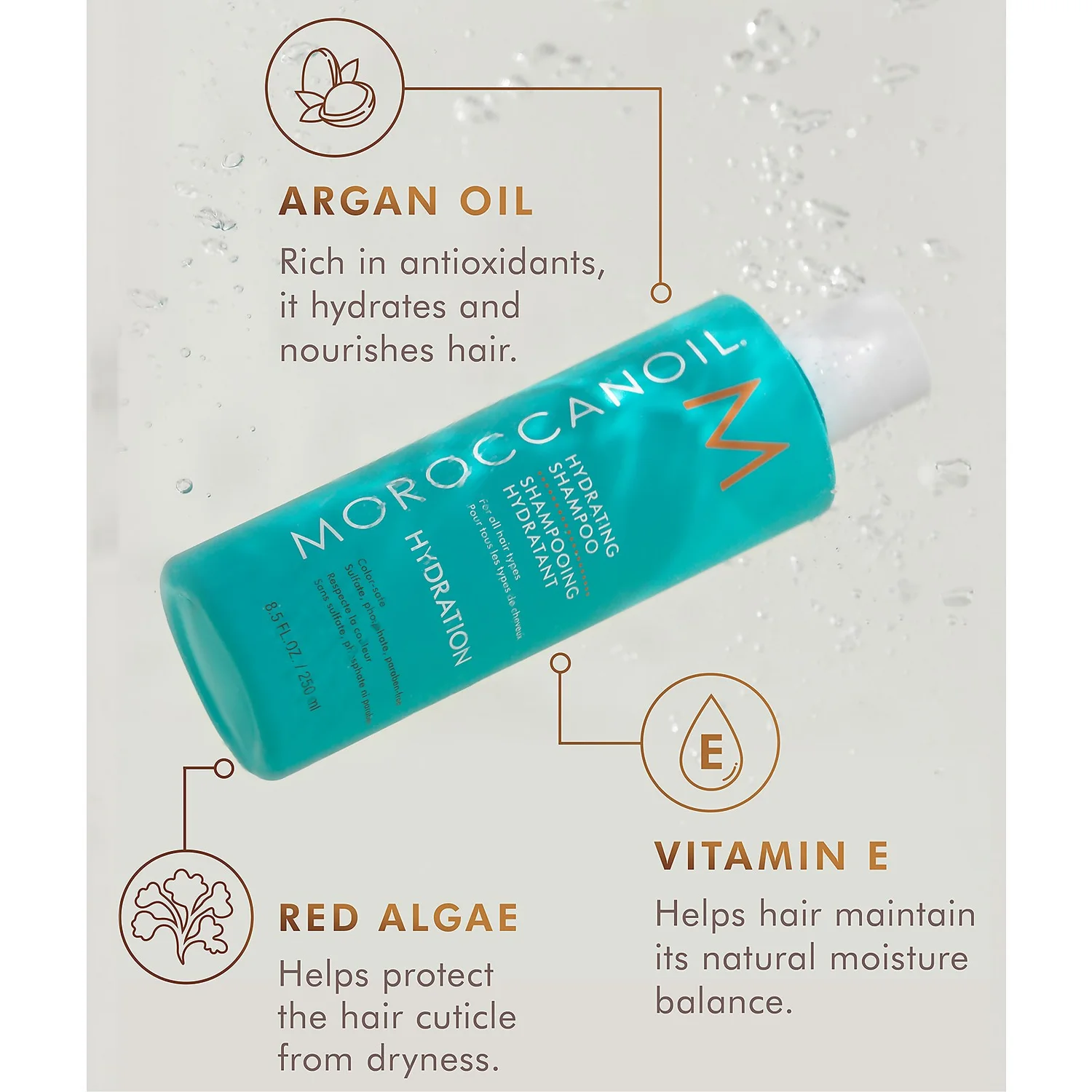 Containing antioxidant rich Argan Oil, Red Algae and Vitamins A and E, this super nourishing Hydrating Shampoo by Moroccanoil works to give you thoroughly cleansed, moisturised and shiny locks. Free from harmful sulphate, phosphate, parabens, the natural antioxidant rich formula is suitable for colour treated hair. Use with Moroccanoil Hydrating Conditioner to see amazing results. K.D.
