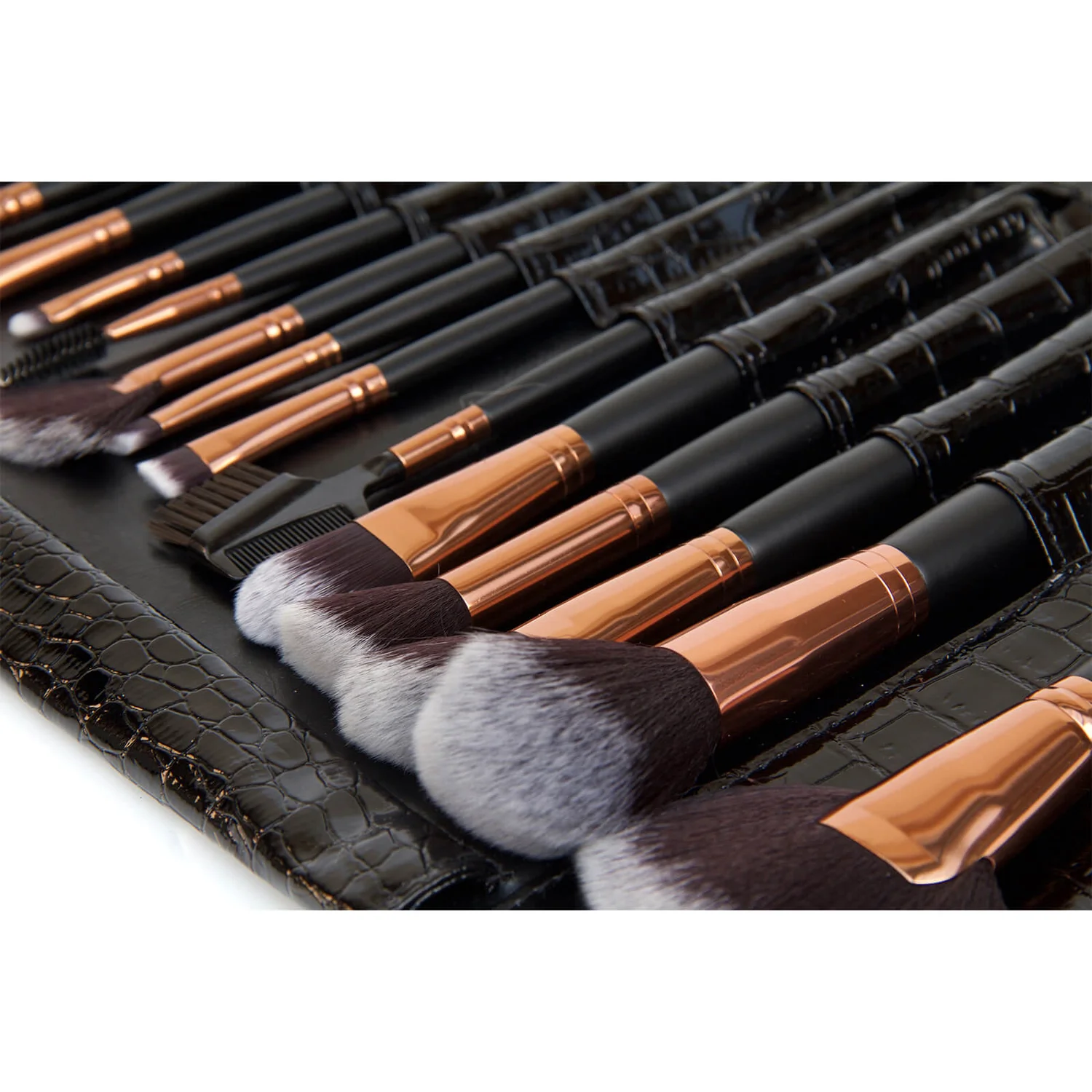They’re suitable for a range of cosmetics in both powder and liquid formulas, including foundation, eyeshadow, eyeliner, blusher, bronzer and concealer. Presented in a faux leather roll-up pouch that protects and maintains the brushes, it’s an ideal set for travelling and allows you to create a truly dimensional, professional finish wherever you are.