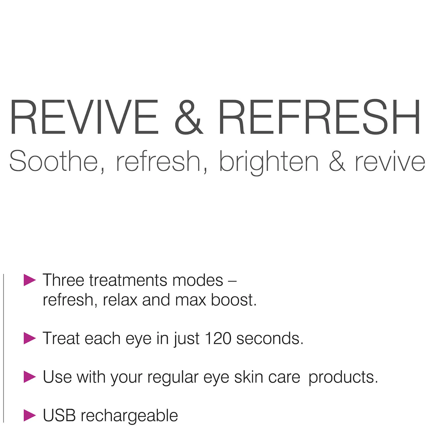 Featuring three settings of warming, cooling and gentle vibrating massage, the Rio Revive & Refresh 3 in 1 Eye Treatment helps to diminish the look of puffiness and dark circles.